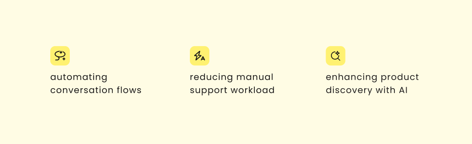 While the FAQ and Product Finder Agents were our initial launch, our long-term goal was to automate more use cases, like abandoned cart recovery, order management, and lead generation (already built on Spectrm's backend but postponed due to capacity).