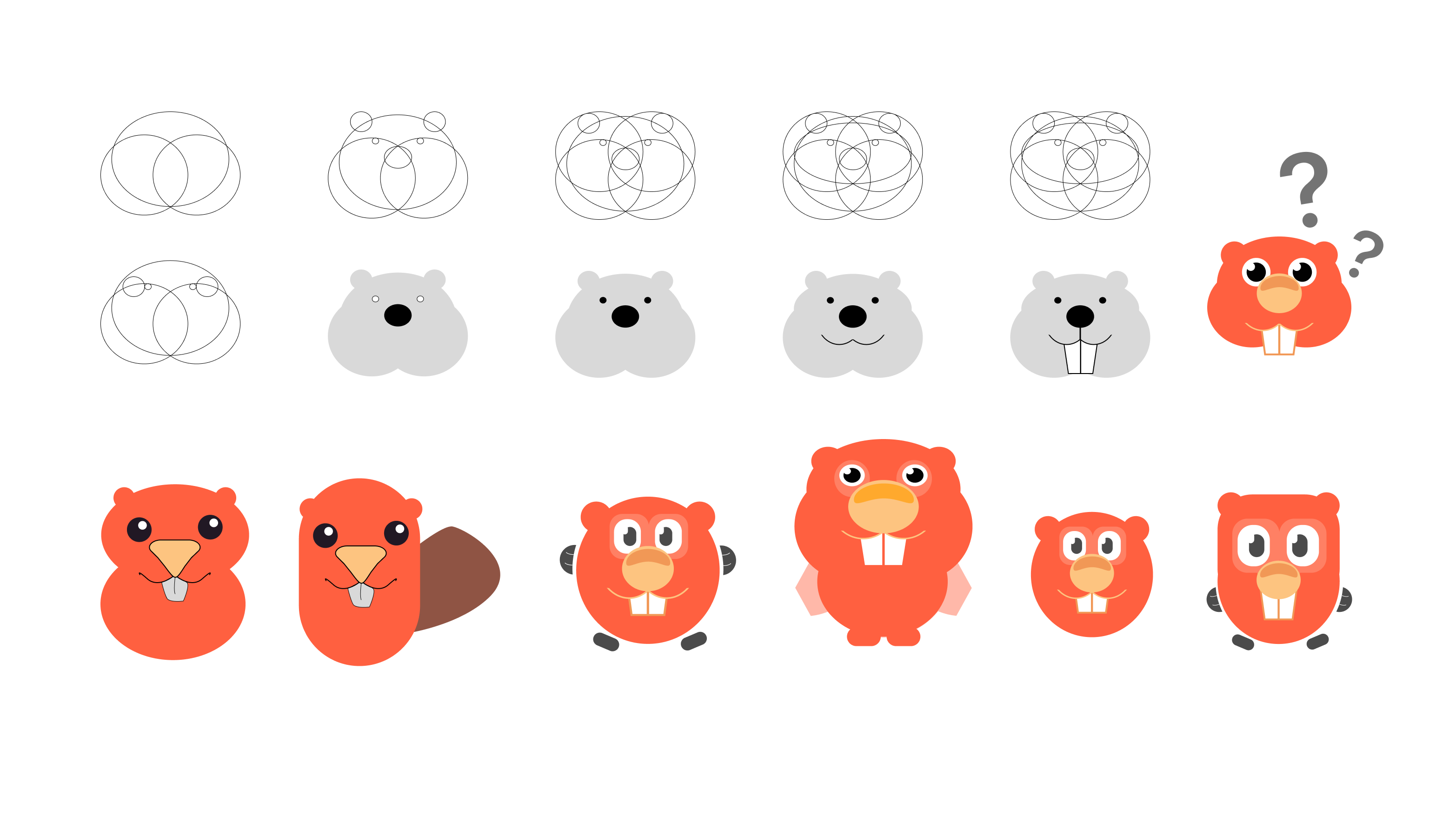 The design was intentionally crafted with adaptability as a top priority. This ensured that we could easily create various versions to suit different scenarios, whether it's a cheerful beaver, a sad one, or adaptations for use as icons or in messaging.